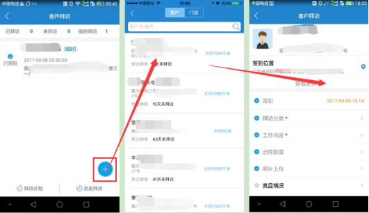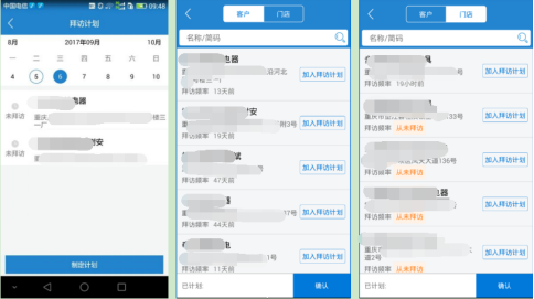 依据拜访计划的日期,会自动显示需要拜访的【客户】或【门店】;根据拜访结果,告知已拜访多少,未拜访多少,临时拜访多少;进行拜访计划工作,选择需要进行拜访【客户】或【门店】,填写拜访详情。