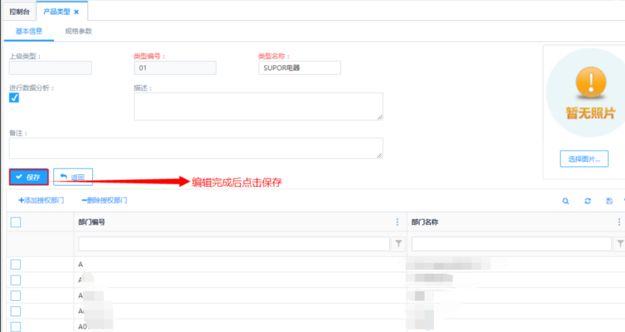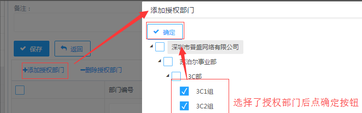 当某些产品类型是指定部门才可以使用的时候,就可以添加授权部门。如果没有添加授权部门,用户是看不到这种类型的产品。