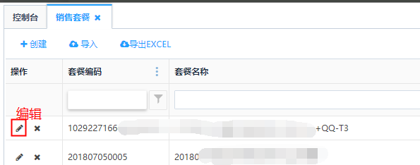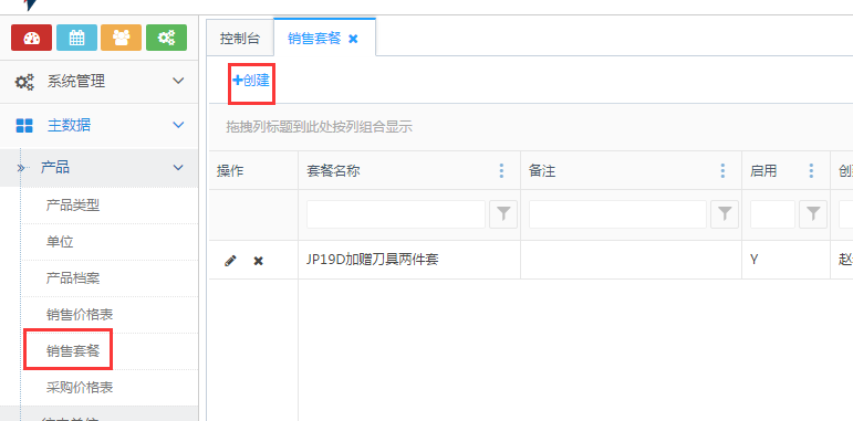 第一步:进入销售套餐界面,点击<创建>按钮,进入套餐创建页