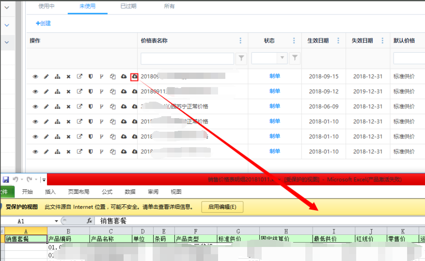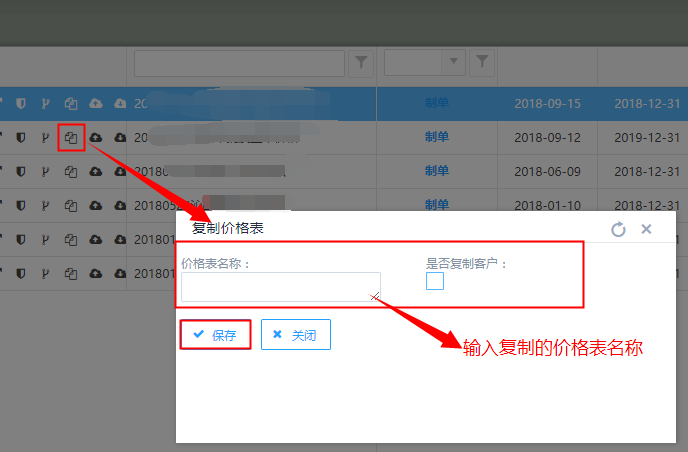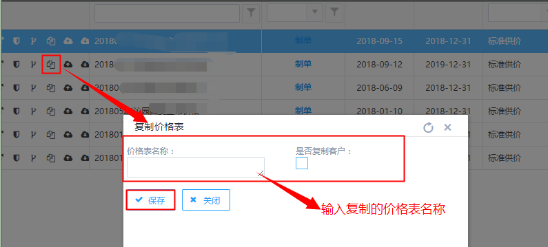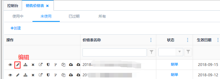 第二步:填写价格表信息后保存,新建的价格表为制单状态,在未使用列表中。