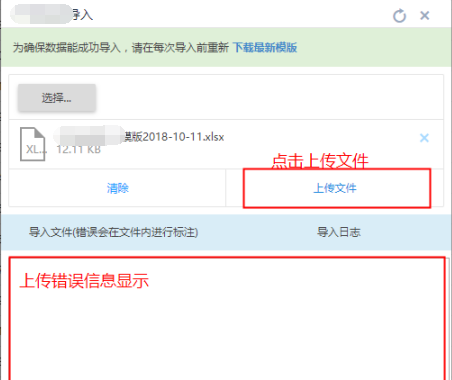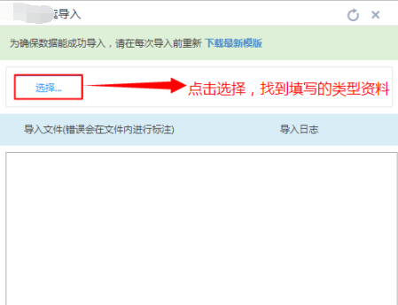 第二步:下载模板后,填写相应的数据,点击<选择>,选择保存的文件: