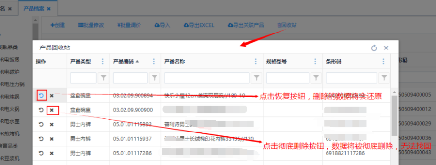 第三步:删除产品档案,删除的产品将移除至回收站。