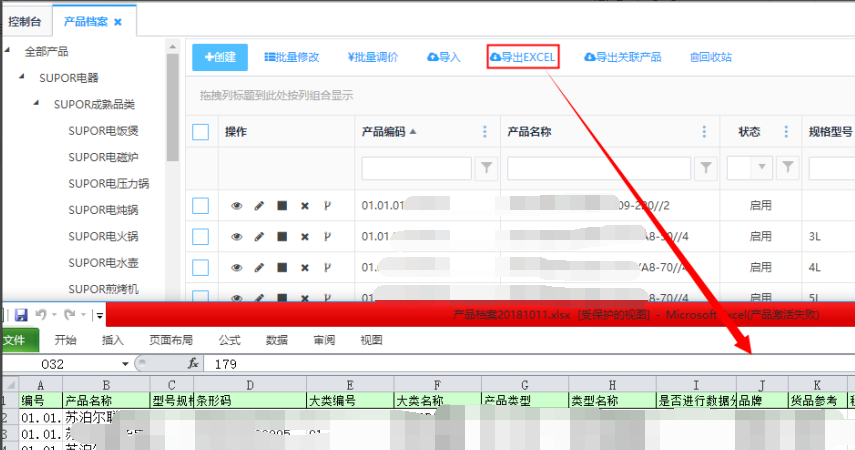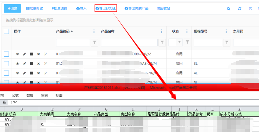 点击页面左上方<导出EXCEL>可将列表所有数据导出到Excel表里。