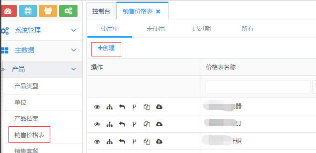 第一步:点击<创建>按钮,进入价格表的创建页面。