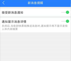 自行选择是否接收系统消息通知,关闭后将收不到快易销APP产生的新消息,请谨慎关闭