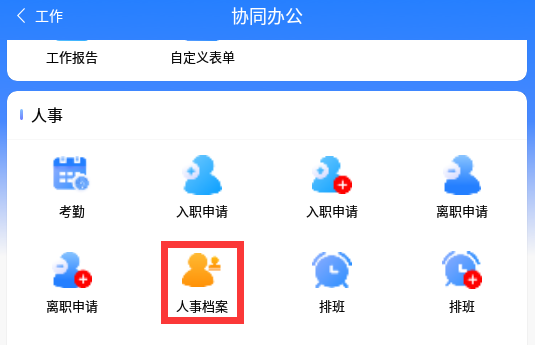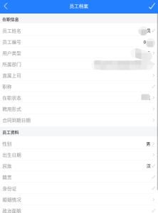 用于查看公司员工信息,档案列表会展示员工姓名及所属部门和职位这些简单的信息,单个点击可查看详情。