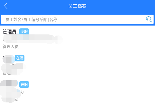 顶部搜索框可根据员工姓名/员工编号/部门名称进行数据筛选