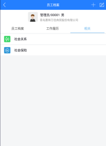 默认展示员工档案,显示员工个人信息,其次可查看员工工作履历及相关社会关系和社会保险