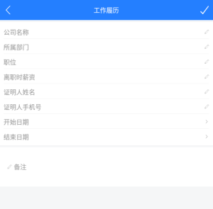 填写完信息点击右上角【√】即可对其工作履历进行新增