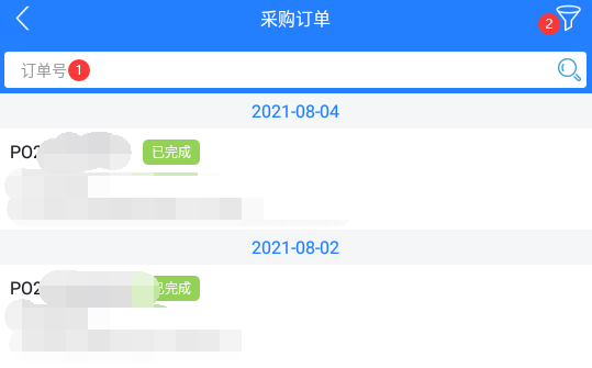 点击不带红标的【采购订单】,点击进去即可查看采购订单记录。