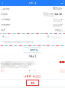 订单在【待审核】、【已退回】、【制单】状态下可对其进行删除,在订单详情页点击编辑并滑到底部即可