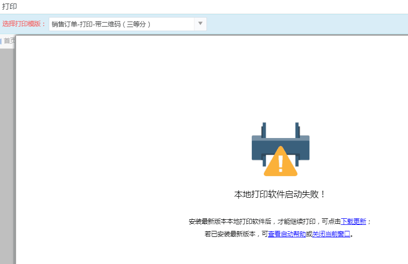 出现如下图情况,打印时启动不了打印软件,打印提示本地打印软件启动失败