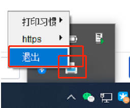 步骤2.查看电脑右下角是否有此图标,如果有此图标,尝试先退出打印插件,重新点击打印,如还出现无法打印,继续第三步