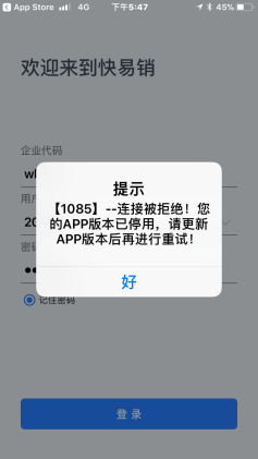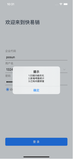 1.当系统有检测到新版本时,会自动弹出升级更新的提示,会跳转到App Store,点击下载,下载后重新登录快易销即可