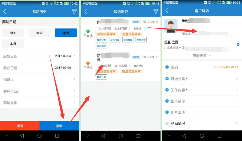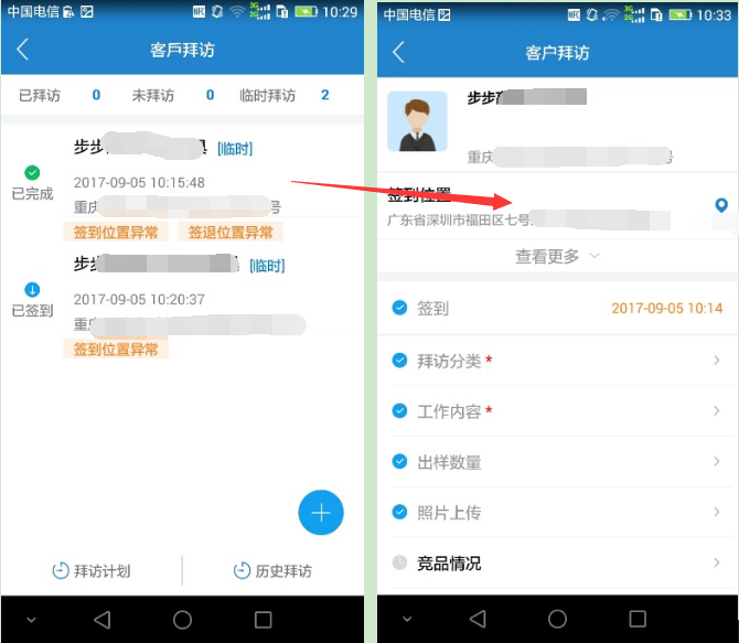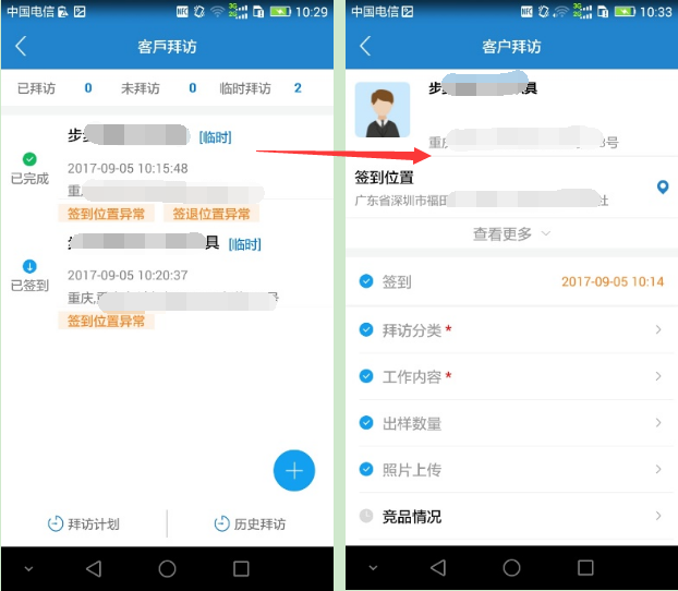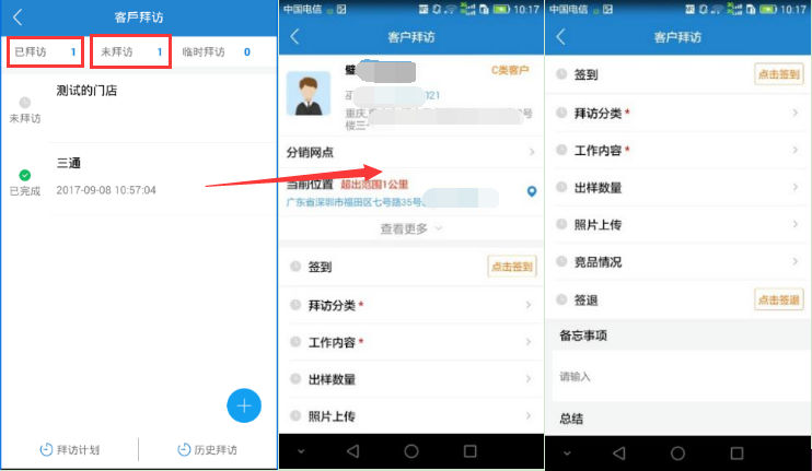 - 拜访结束,需要签退;不签退,此客户一直在拜访当中。签退才算拜访正式完成。