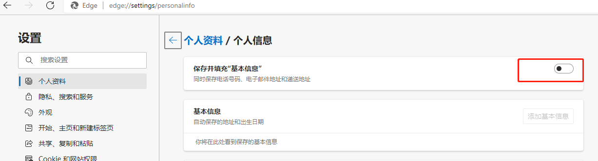 在浏览器设置 → 个人资料 → 关闭自动填充项