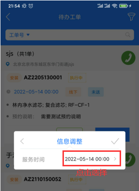 点击<调整>按钮,可以对服务时间进行调整。调整时间后点击√。