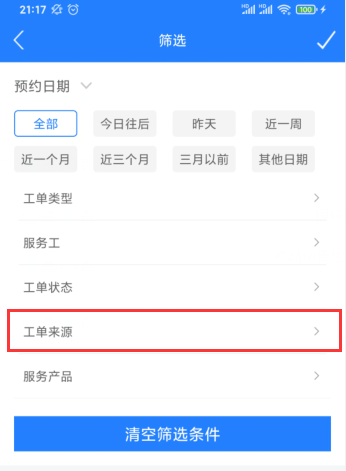 5.可以根据"工单来源"进行筛选;工单来源是根据系统配置的