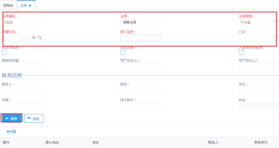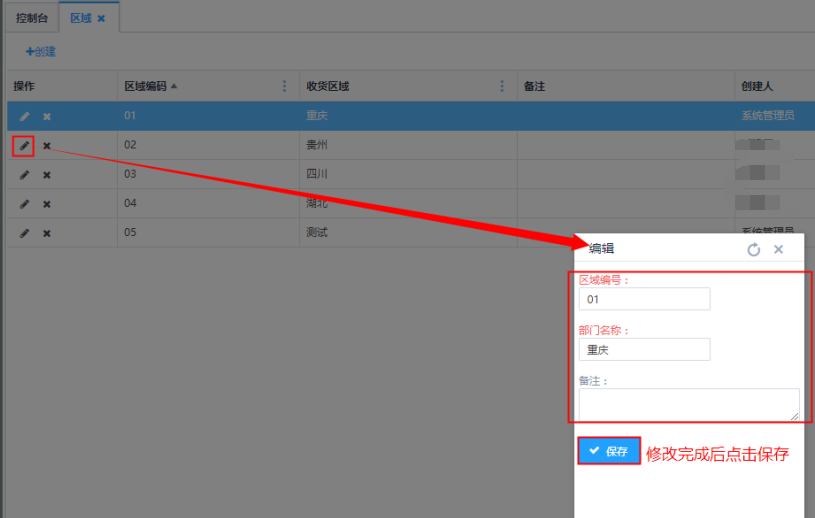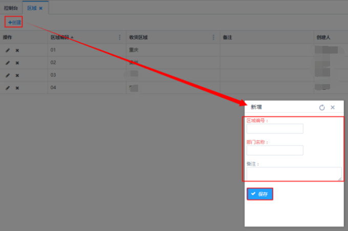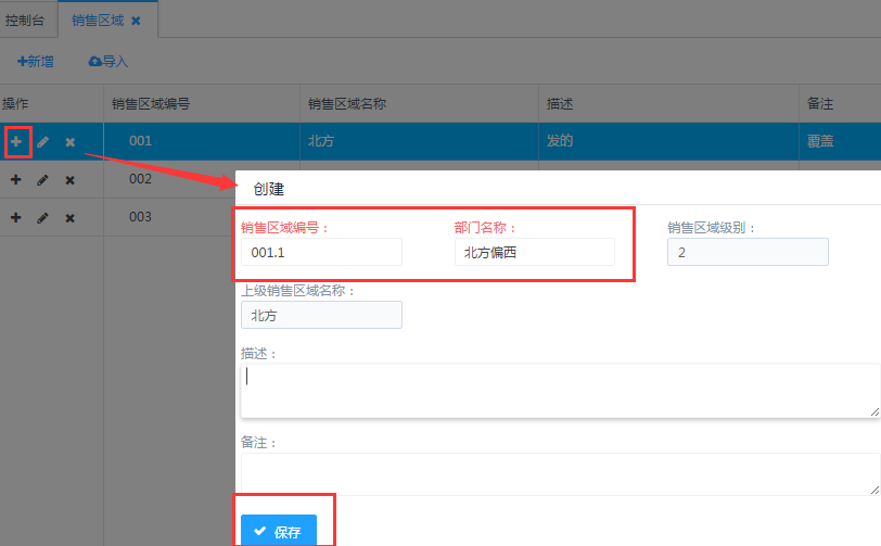 填写好区域编号、部门名称、备注相关信息后保存即可。