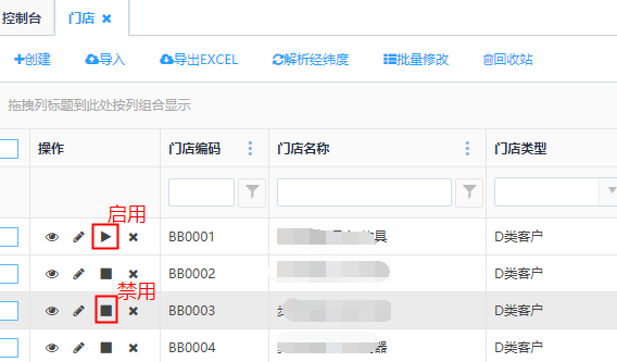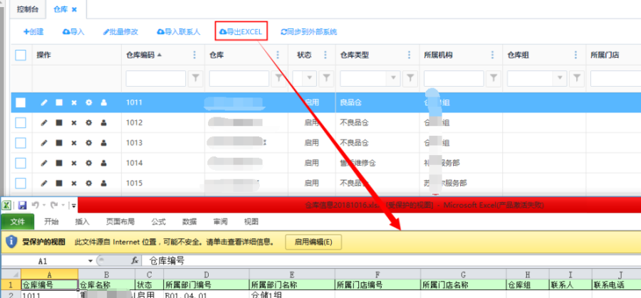 点击列表上方的<导出EXCEL>按钮可导出门店列表所有内容。