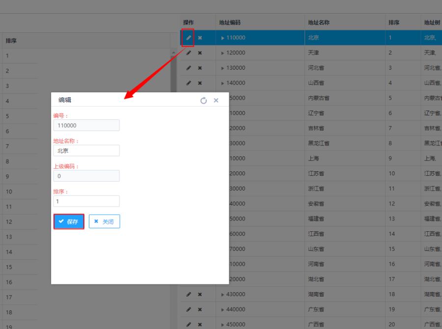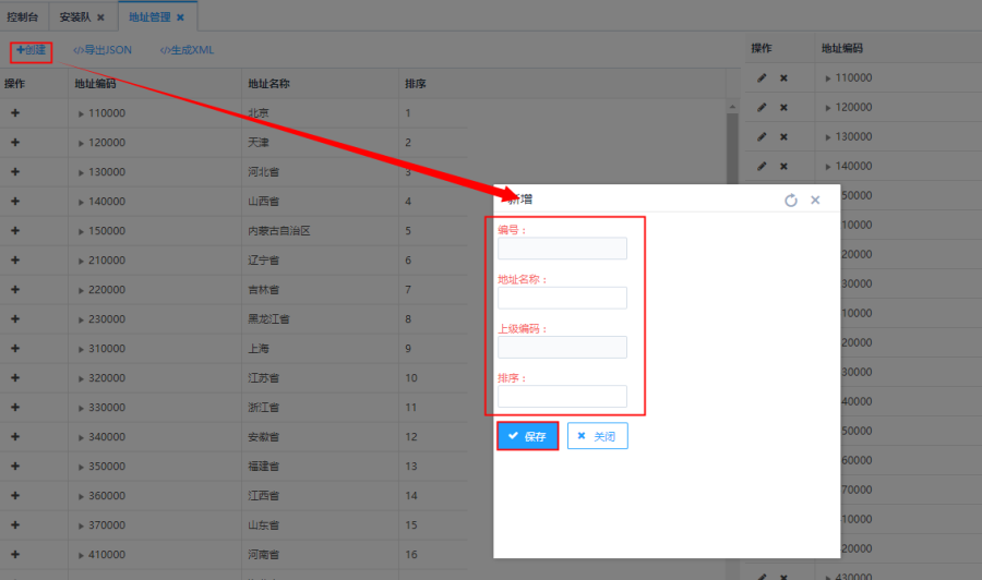 填写好编号、地址名称、上级编码及排序相关信息后保存即可。