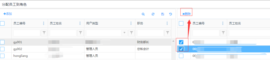 多选的员工可以删除,选中要删除的员工,点击<删除>按钮