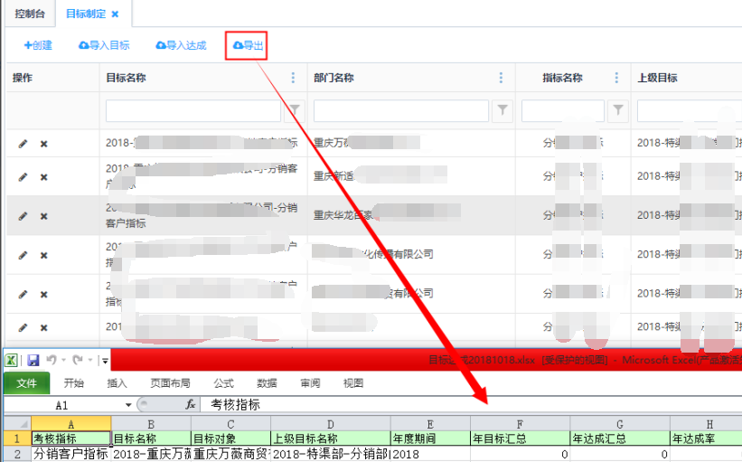 点击列表上方的<导出>按钮可导出目标制定列表所有内容。
