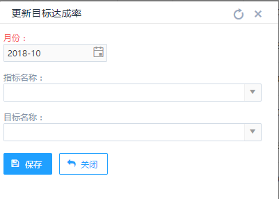 第一步:可以更新各个目标完成情况,点击更新数据。选择需要更新目标达成率的月份和指标名称。如图