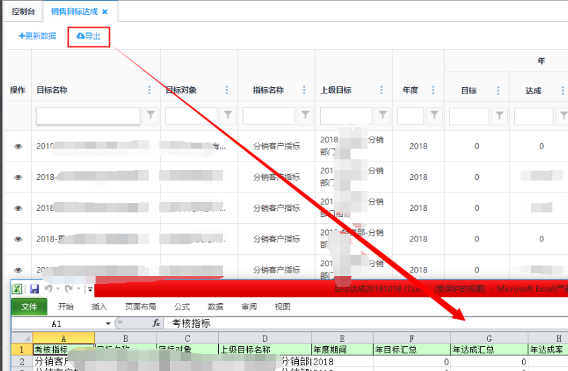点击列表上方的<导出>按钮可导出销售目标达成列表所有内容。