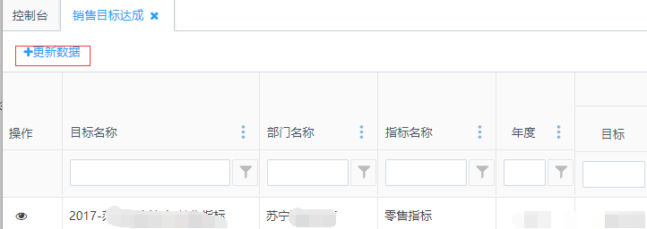 注:数据较多时会更新很长时间,如果需要查看具体的目标达成情况时可以选择具体的指标名称和目标名称。