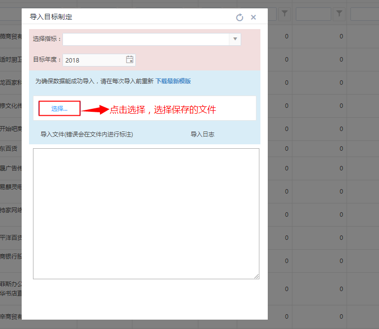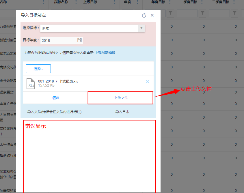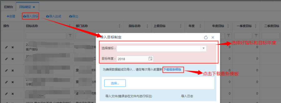 点击列表上方<导入目标>按钮,可批量导入数据,创建目标制定。