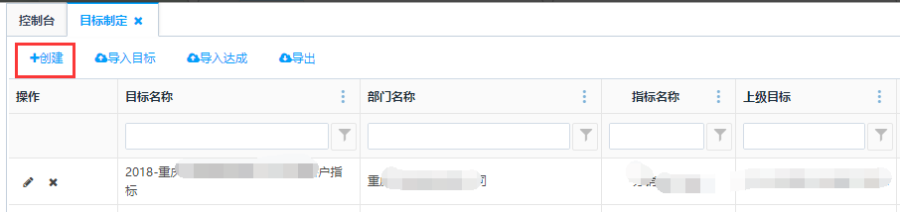 第一步:创建目标制定,点击页面左上方的<创建>按钮,进入到目标制定创建页面。如图: