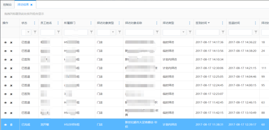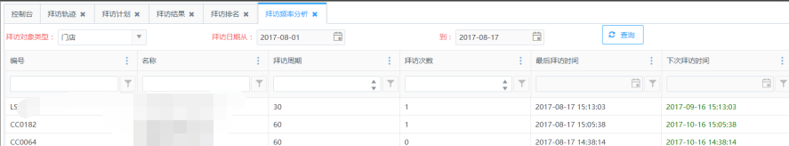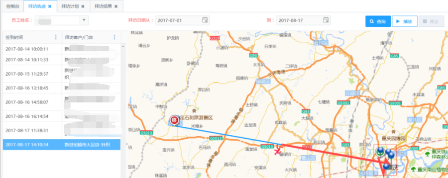 选择员工姓名、拜访日期;点击查询按钮,如图