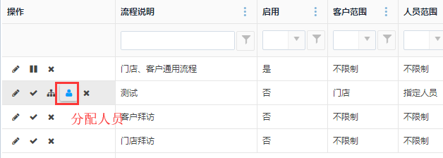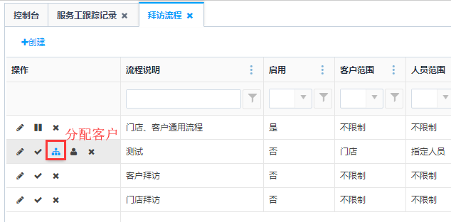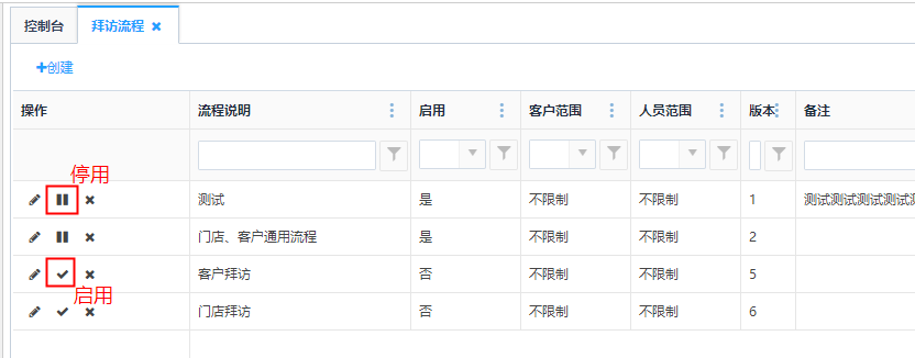 - 启用:拜访流程每次创建之后,未启用,需要手工进行启用;