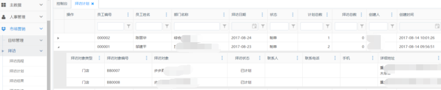 查询拜访计划制定,拜访对象及详细地址和联系人。如图