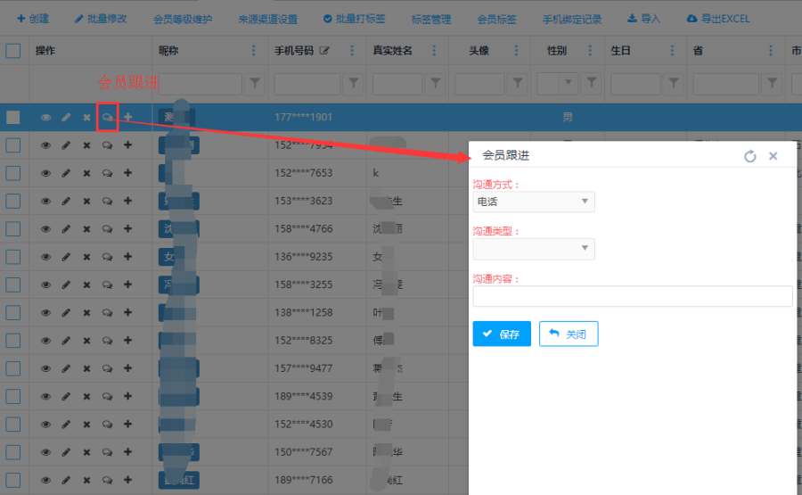 访问路径:市场营销—会员管理—会员跟进