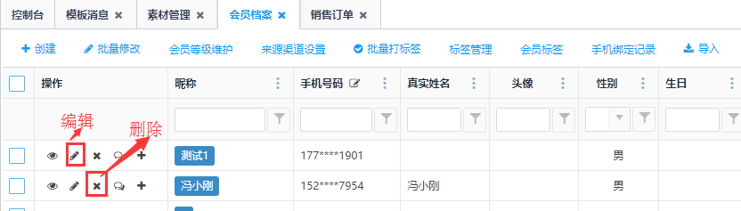 编辑和删除会员信息