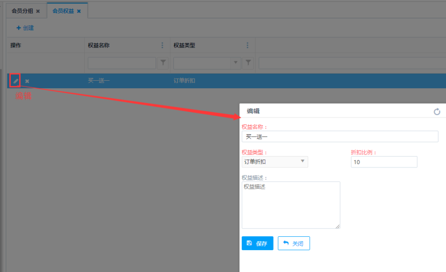 编辑/删除会员权益
