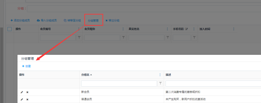 访问路径:市场营销—会员管理—会员分组