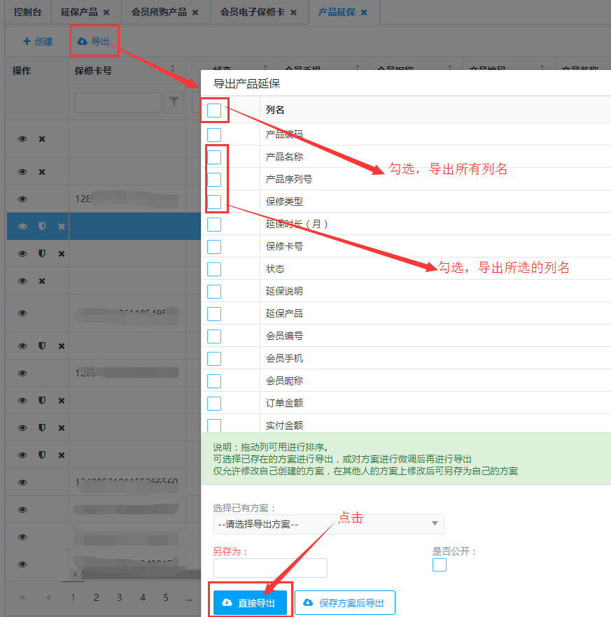 访问路径:市场营销—会员管理—延保产品
