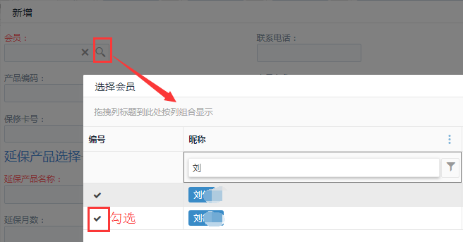 访问路径:市场营销—会员管理—产品延保