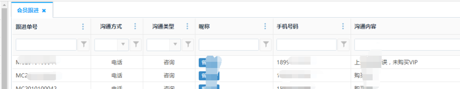 注:点击查看按钮-》沟通记录查看会员跟进历史记录。