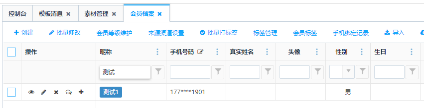 访问路径:微会员—会员管理—会员档案