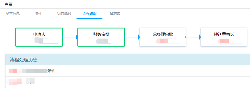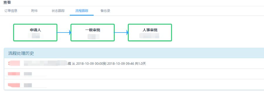 注:当订单为审批中时点击<流程跟踪>,可查看当前的审批节点和审批人信息。