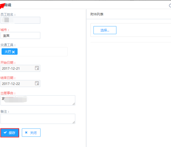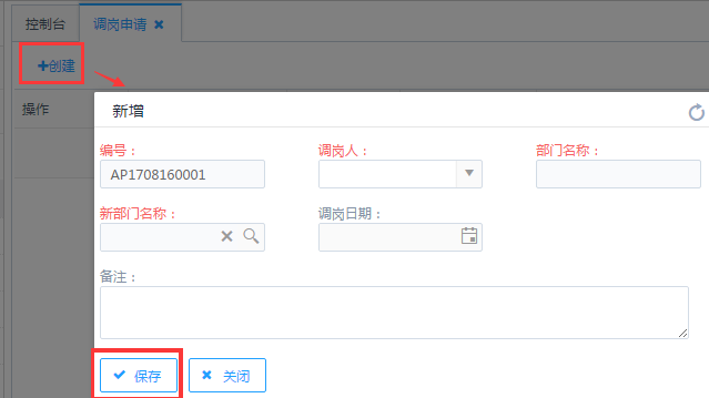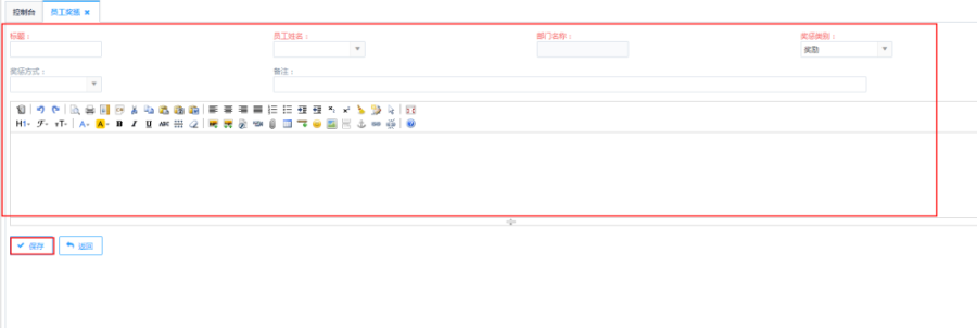进入创建界面后,填写奖惩信息(红色标签为必填项,编号自动填充)后,点保存即可。