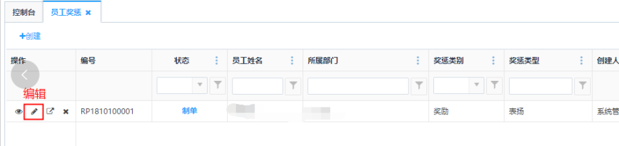 单击界面左上角的<创建>按钮,可创建员工奖惩。