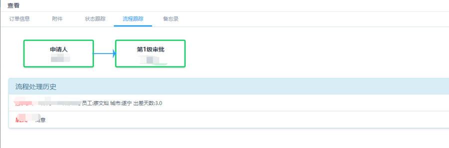 注:当订单为审批中时点击<流程跟踪>,可查看当前的审批节点和审批人信息。