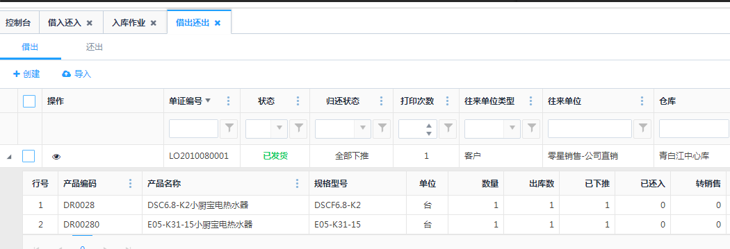 借出单子 下推还入下推成了销售 现在还入单自动完成了,但是出不了库