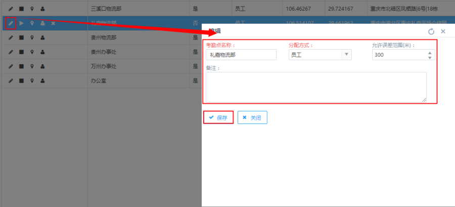 填写好考勤点名称、分配方式、允许误差范围以及备注后保存即可。