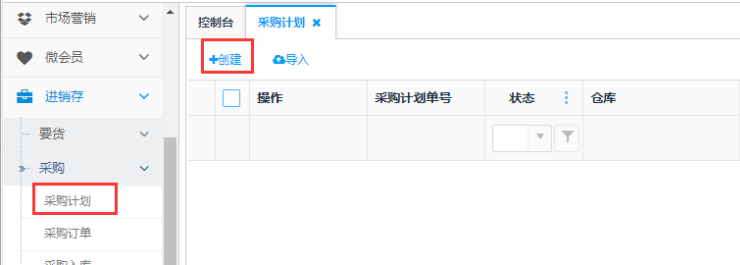 访问路径:进销存—采购—采购计划